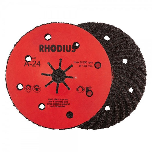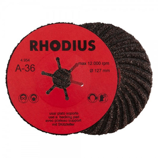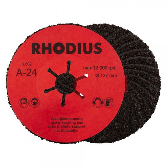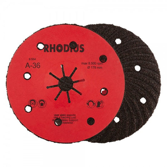 Der Einsatz dieser Fiberscheibe darf nur mit einem passenden Stützteller, zum Beispiel dem Rhodius RH TURBO oder dem Rhodius RH ST, erfolgen. Hierbei ist zwingend auf den entsprechenden Durchmesser des Stütztellers zu achten.